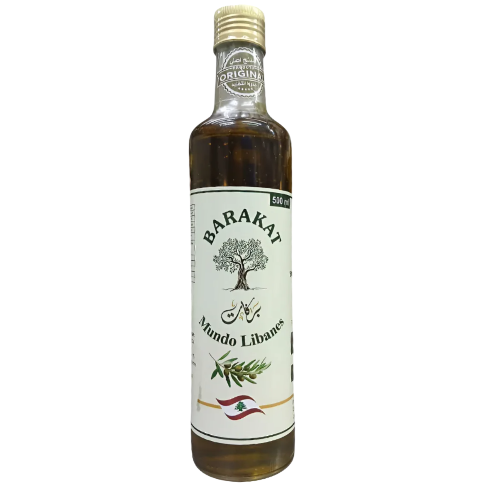 Azeite Barakat Libanês Extra Virgem 500ml: azeite importado do Líbano, extração a frio, sabor frutado com leve picância, ideal para saladas, finalizações e pratos mediterrâneos.